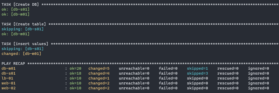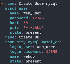 when: ansible_facts.hostname == "db-m01" # 조건문으로 Master에만 생성되도록 설정