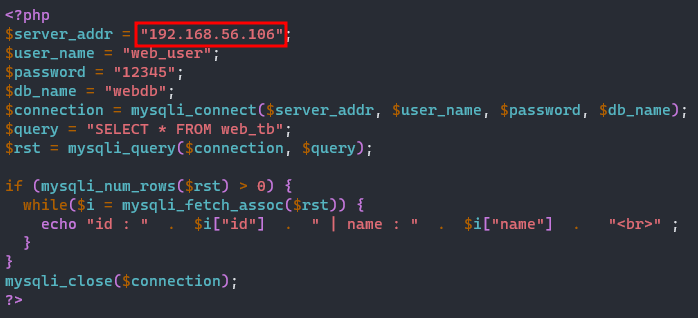 lb 서버를 통해 로드밸런싱되도록 index.php 파일 내 server_addr을 lb 서버 ip로 변경한다.