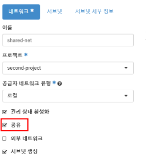 - 관리자는 공유 방식의 네트워크를 생성 가능