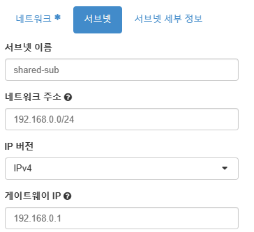- 서브넷으로 IP 주소 대역을 지정 -> GW 주소 설정 및 DHCP 사용 설정
