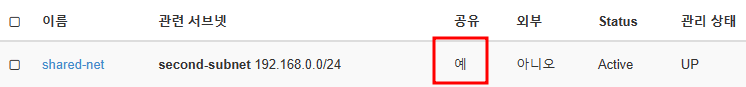 관리자는 공유 방식의 네트워크를 생성 가능하다.
