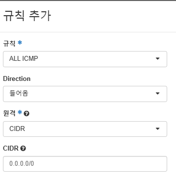 icmp ping 허용을 위해 ALL ICMP 규칙 추가함