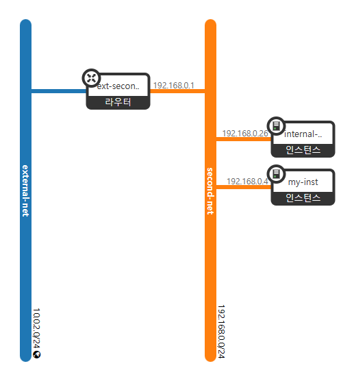 - 인스턴스를 직접 연결하지 않고 라우터를 통해 내부용 네트워크와 연결