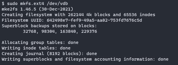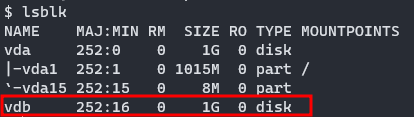 sudo mount /dev/vdb /mnt #/mnt 디렉토리와 마운트