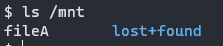 touch /mnt/fileA #mnt 디렉토리 하위에 fileA 생성