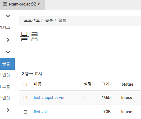 현재 볼륨은 user02 사용자 - exam-project02에서 생성